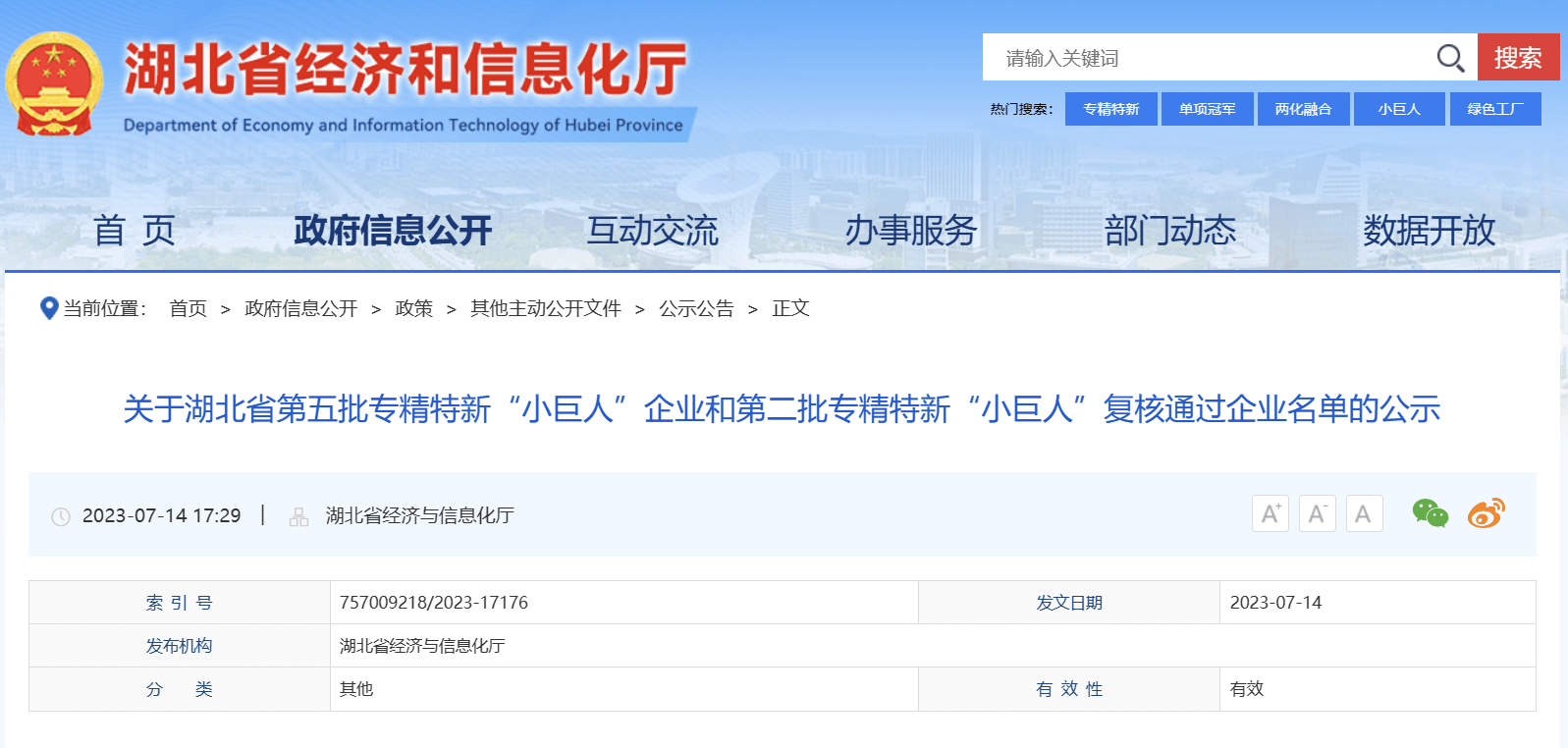 2023年7月14日,國家工信部發布了第五批專精特新“小巨人”企業名單,武漢鼎業安環科技集團有限公司(原武漢鼎業環保工程技術有限公司)憑借在安全環保領域的綜合實力和科技創新能力,榮獲國家級專精特新“小巨人”企業!