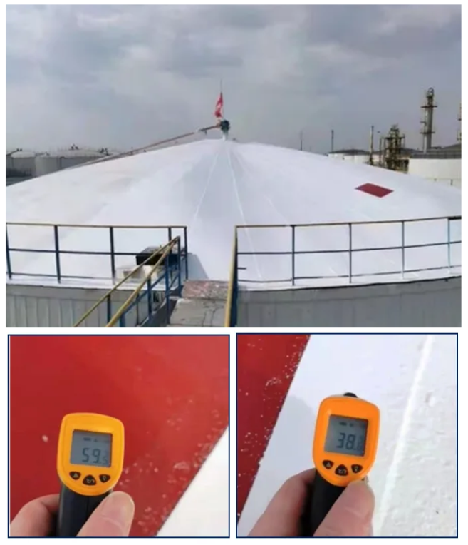 再生循環(huán)保溫材料在儲罐浮頂的絕熱降溫效果:從59℃下降到38℃